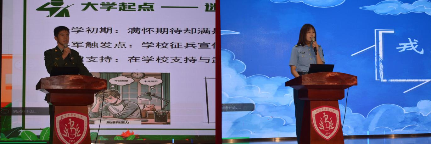 活动最后,退役大学生士兵代表分享了参军经历。人文学院的雷壹帆同学提到,军营生活磨练了自己的意志品质,让自己学会了坚持与奉献;护理学院的张欣悦同学则表示,参军经历培养了自己的抗压能力与执行力,这些宝贵品质都将助力未来的学习与生活。两位同学的分享,为新生上了一堂生动的爱国主义与奋斗精神教育课,引发了在场师生的共鸣。